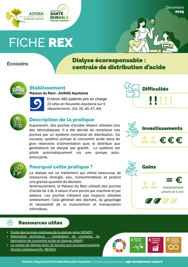 - Dialyse écoresponsable : centrale de distribution d’acide